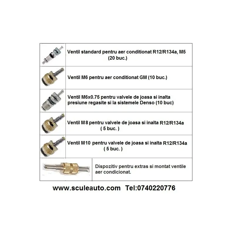 - ventile pentru cuplele inalta si joasa presiune de la sistemele de aer conditionat si clima auto.