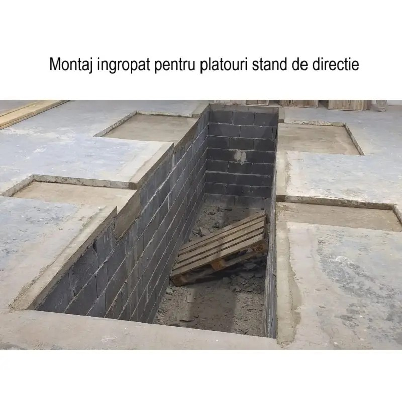Varianta 2: se fac decupaje în pardoseala existentă cu dimensiunile specificate în schița din secțiunea poze, după care platourile se montează și vor rămâne la înălțimea pardoselei existente.