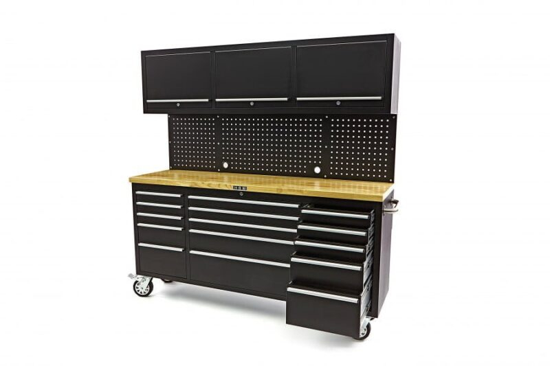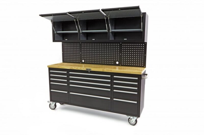 • Dimensiunile căruciorului de scule NUMAI FĂRĂ roți și mânere 183 x 48 x 76 cm.