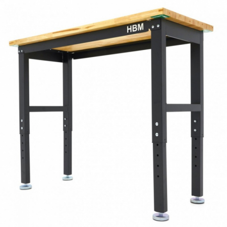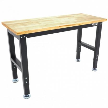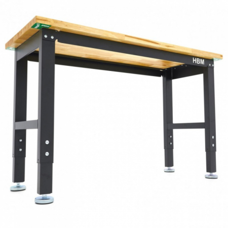 HBM Banc de lucru cu blat din lemn masiv, reglabil pe inaltime 122 cm