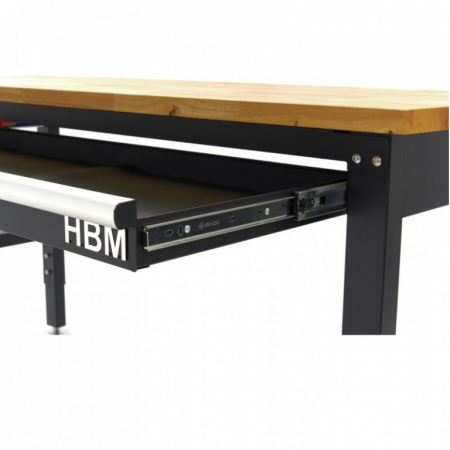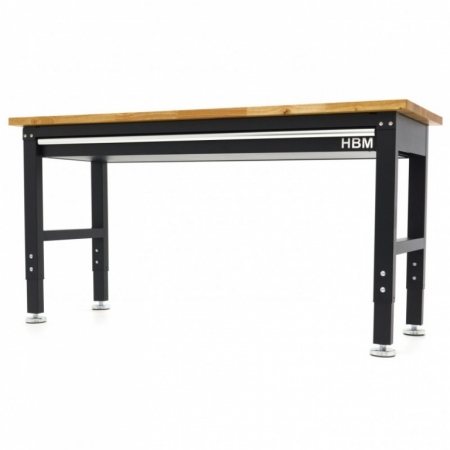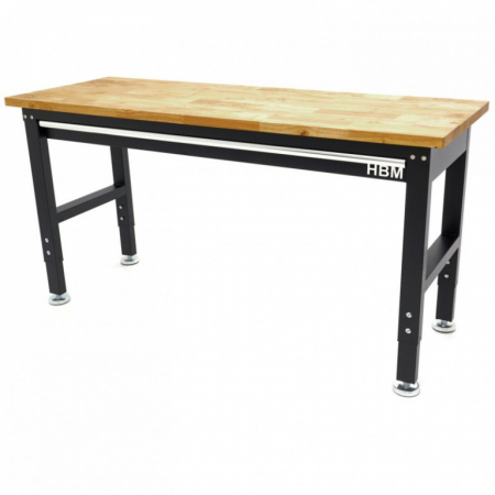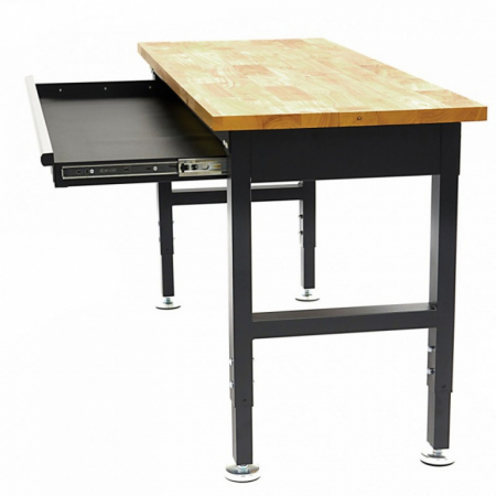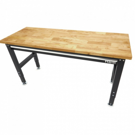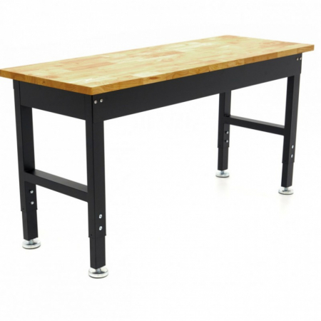 Blatul de lucru, realizat din lemn masiv de 30 mm grosime, permite manipularea pieselor foarte grele, iar construcția solidă din oțel oferă stabilitate și capacitatea de a susține sarcini de până la 815 kg.