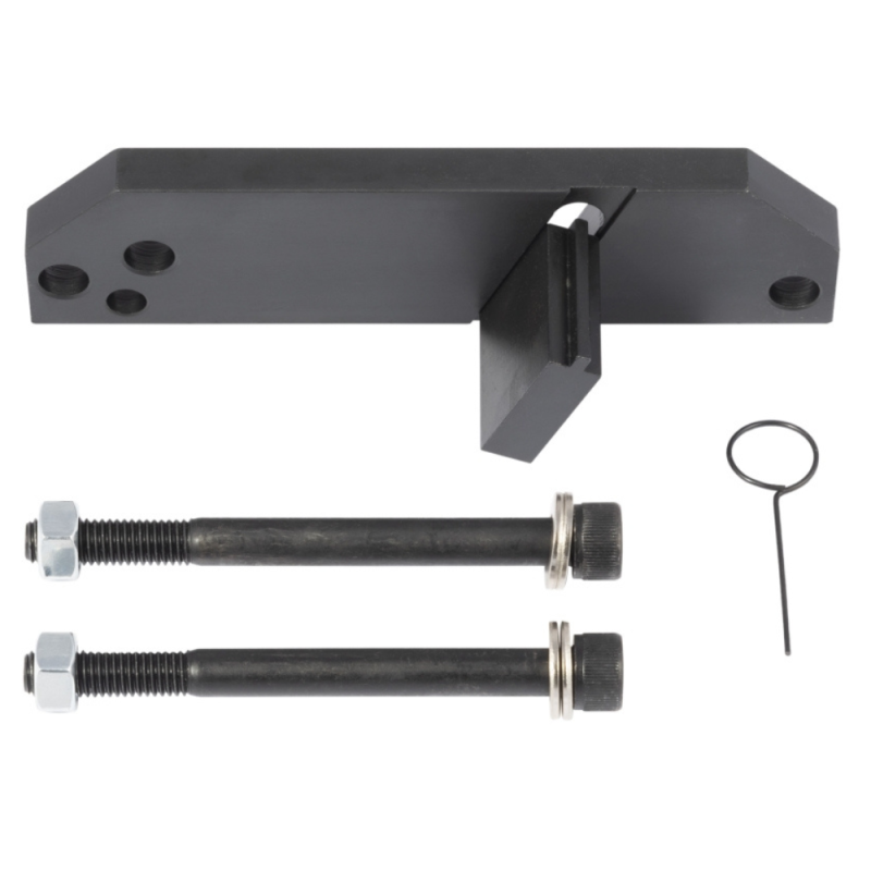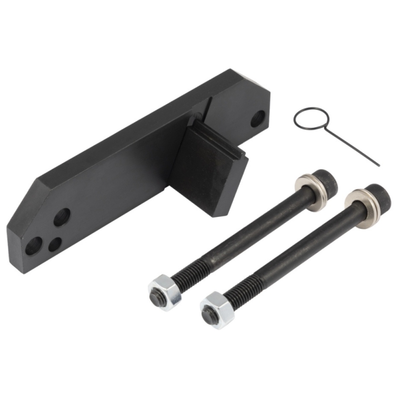 Dispozitiv profesional pentru blocarea volantei, utilizat în locul demarorului, care permite fixarea sigură a arborelui cotit în timpul demontării și montării fuliei sau a șuruburilor volantei.