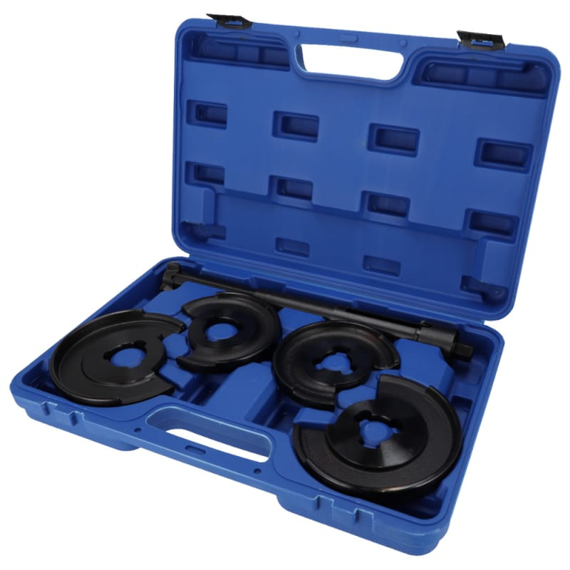 Ideală pentru service-uri auto profesionale, ateliere de reparații sau utilizatori avansați, presa garantează stabilitate și precizie în manipularea arcurilor de suspensie, reducând considerabil timpul de lucru.