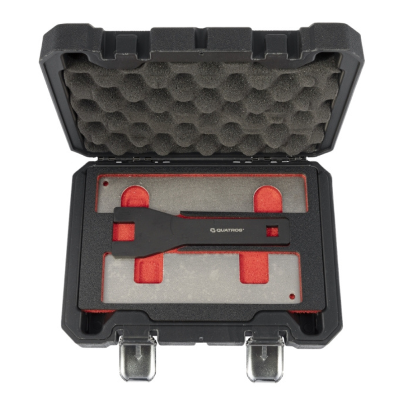 Setul permite blocarea arborilor cu came pentru motoarele turbo și aspirate, precum și poziționarea corectă a arborelui de echilibrare, prevenind decalarea distribuției și asigurând montajul corect al componentelor în timpul intervențiilor asupra motorului.