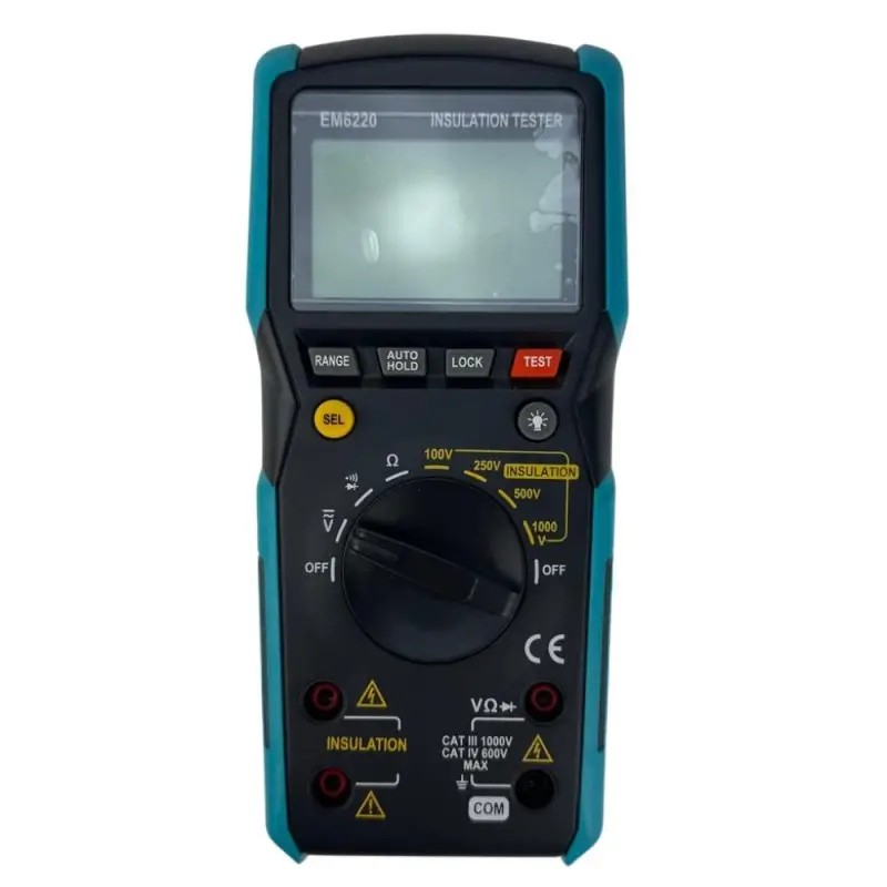 Dispozitivul poate măsura tensiuni AC și DC, rezistență, continuitate, diode și, în principal, rezistența de izolație, având posibilitatea de a selecta tensiuni de test la 100V, 250V, 500V și 1000V.