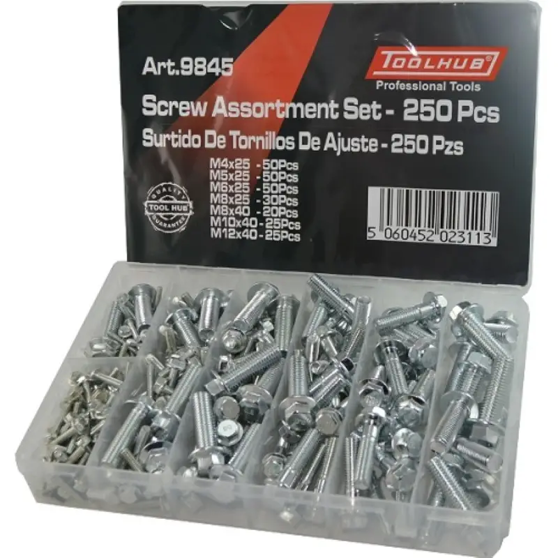 Trusa contine 250 bucati suruburi de diferite dimensiuni, si anume: