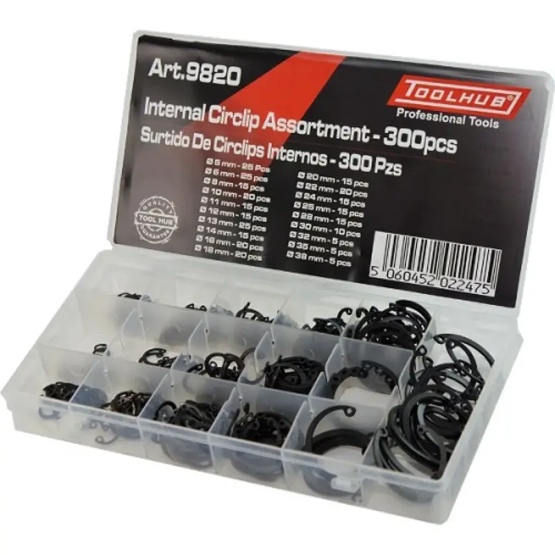 Trusa cu sigurante seeger interior contine 300 bucati de sigurante de diferite dimensiuni, si anume: